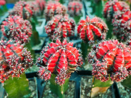 Melon Cactus (or Turk's Cap, Gray Melon Cactus) with red hairs. Its scientific name is Melocactus Caesius (Syn. Melocactus Curvispinus). Prickly cactus spines of a very dangerous succulent plant.