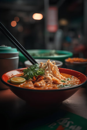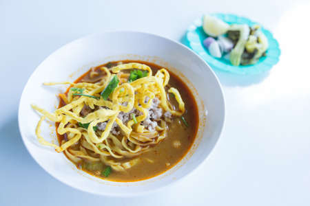 Egg noodles with spicy soup, Thai spicy noodles