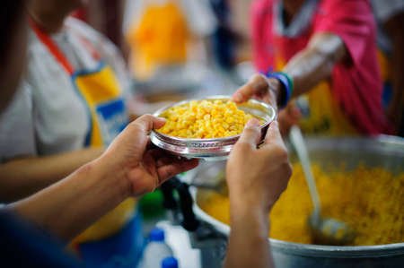 Poor people get free food from volunteers: Concept serving free food to the poor