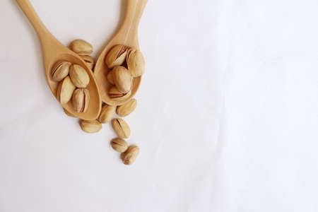 Pistachios nuts on a background of white