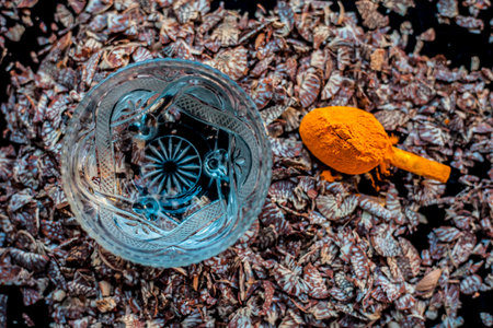 Face mask for smooth skin consisting of supari or betel nut along with some turmeric powder and water on a black wooden surface.