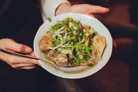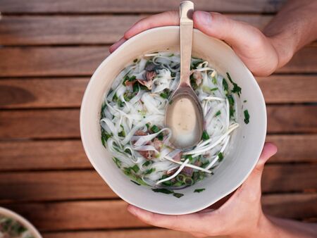 Vietnamese soup pho bo. PanAsian cuisine. Veal noodle soup