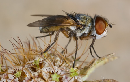 Flies in a close-up macro shoot, Blow fly, carrion fly, bluebottles or cluster fly