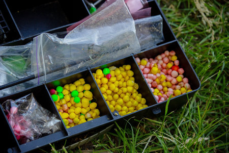 miscellaneous angling baits in plastic box
