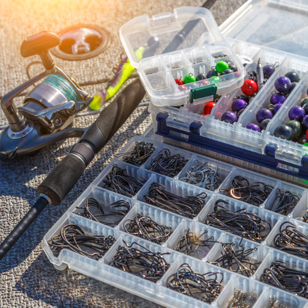 Fishing Rod and Tackle Box in the concept of angling and leisure