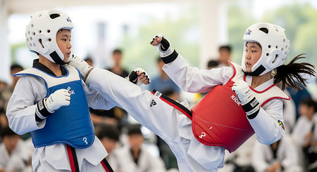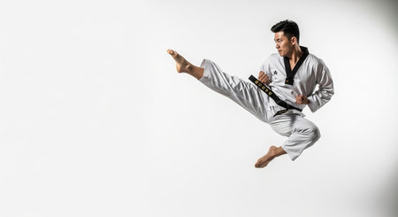 Precision in Motion Asian Taekwondo Kick in Mid-Air