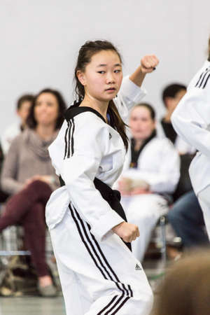 Denver, Colorado, USA-February 21, 2016. Tae Kwon Do testing for verious degree of black belts.