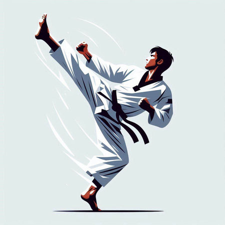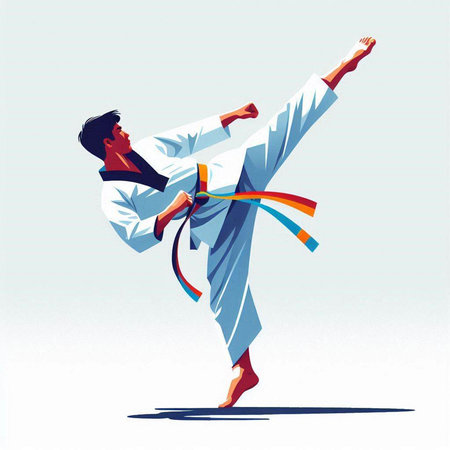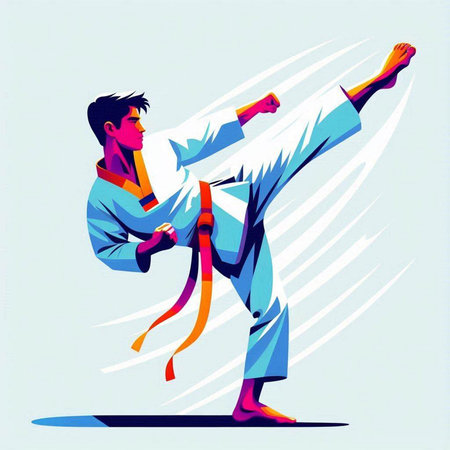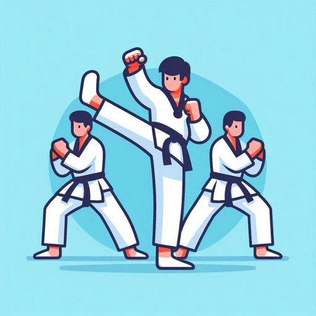 Taekwondo training. Sport and fitness. Vector illustration in cartoon style