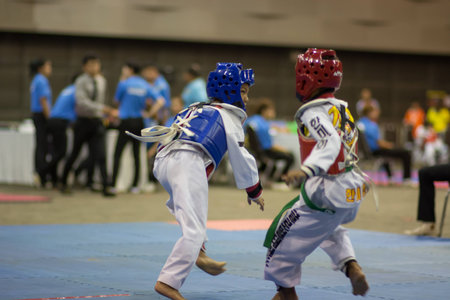 BANGKOK, THAILAND - APRIL 4 : Unidentified Thai students 4 - 17 years old in action at GH BANK Taekwondo championship 2015 on April 3-6, 2015 in Bangkok , Thailand