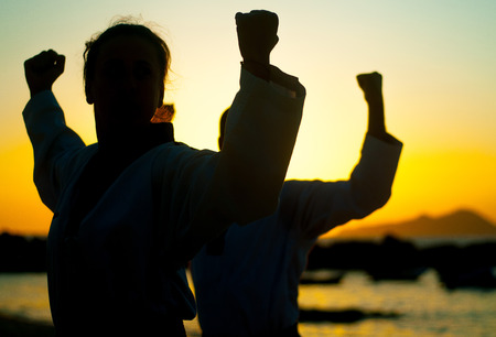 karate-do training and a healthy lifestyle. Added blur effect for more motion effect. Retro style.