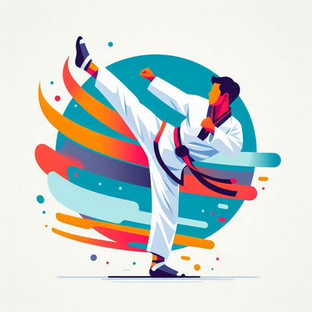 Taekwondo in watercolor splash paint illustration with Generative AI.