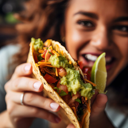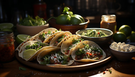 Freshness and spice in a homemade Mexican guacamole taco meal generated by artificial intelligence