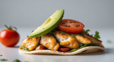 AI Generated. Delicious Fish Taco with Avocado and Tomato