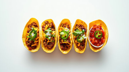 Tacos with toppings isolated on white background