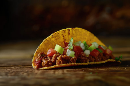 Tacos food, A crunchy taco shell filled with savory meat, AI generated