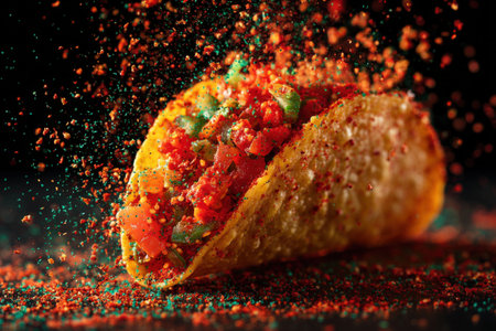 colorful taco filled with various fresh ingredients,high calories junk food AI generated