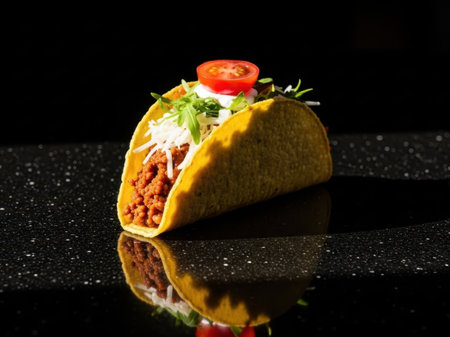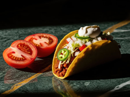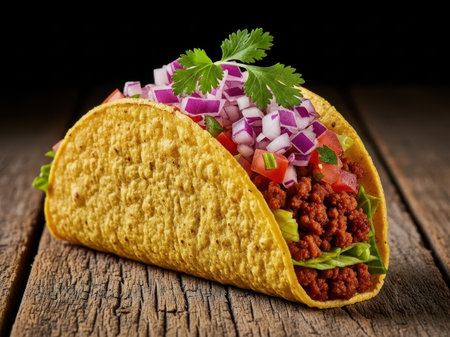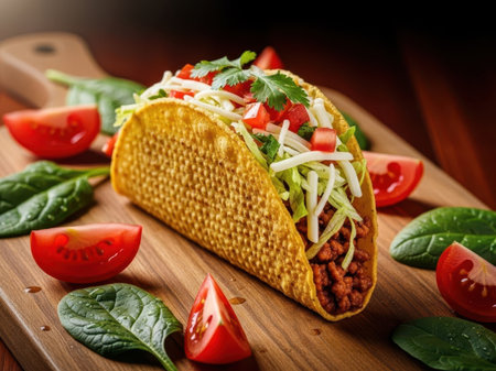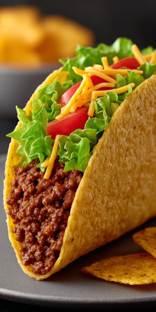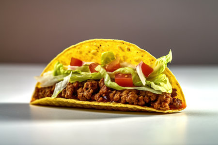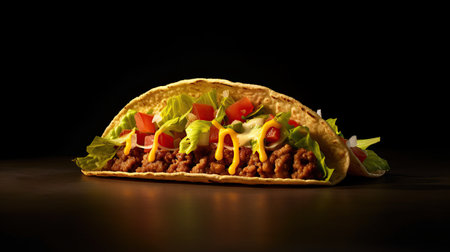 Delicious Crunchy Taco Filled with Juicy Beef, Fresh Vegetables, and Cheddar Cheese for Tasty Meal