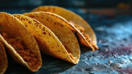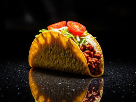 Tacos food, A crunchy taco shell filled with savory meat, AI generated