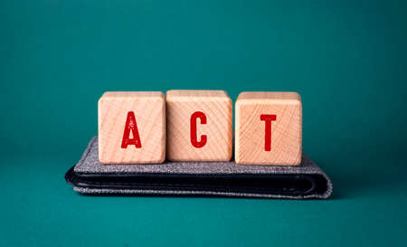The word act is written on wooden cubes on a green background.