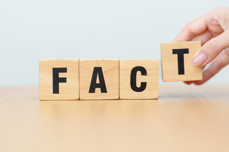 wooden block FACT. rumor News, false, myth, evidence and disinformation concepts