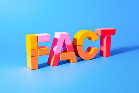 Bright colorful letters spelling 'FACT' against a blue background. Generative AI