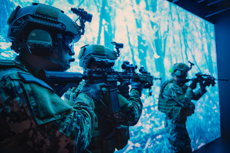 A squad of elite soldiers undergoing advanced training simulations, Ai generated