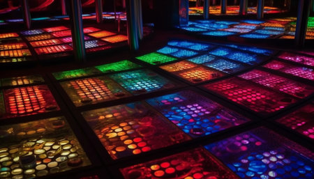 Vibrant colors illuminate stained glass, modern architecture shines generated by artificial intelligence