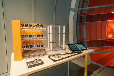 Geneva, Switzerland, Europe - 1 Dec 2025 CERN, Globe of Science and Innovation building, Universe of Particles exibition, Galileo Galilei Square, European Organization for Nuclear Research