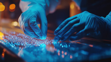 Scientist carefully placing samples on a microchip in advanced laboratory