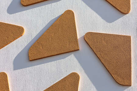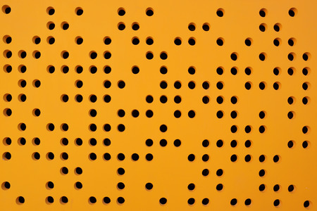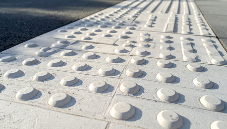The geometric pattern of a yellow tactile warning tile for pedestrian safety on a city street