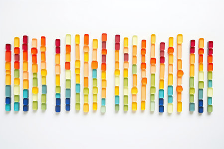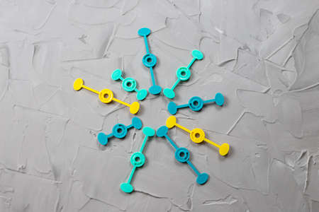 Abstract background with plastic colored parts on gray concrete can symbolize parts of a whole