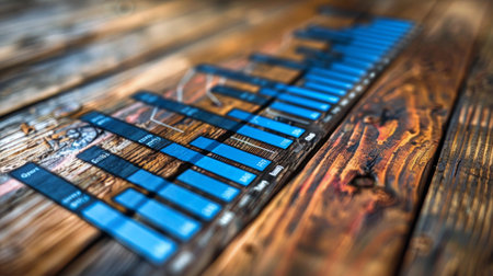 a closeup of a kanban-style board with colorful yellow and blue tasks arranged in rows, symbolizing agile project management and workflow visualization. ai generated.