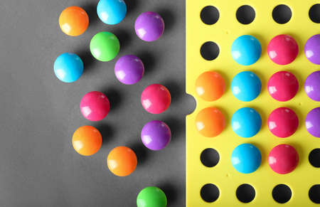 Circles of different colors, mosaic. Early development concept. Toys in a child's life, exploring colors. Activities with the baby. Preparing for kindergarten. Conscious matry. High quality toys for children.