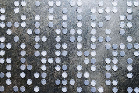 Metallic discs arranged. Circular pattern. Unity and connection idea.