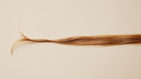 Close up of a broken strand of hair showing fragile texture against a soft, neutral background, highlighting the complexity of hair strands.