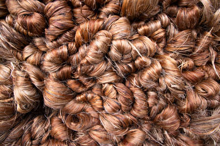 Artificial hair, used in hairdressing and beauty salons. Beauty concert. Wigs