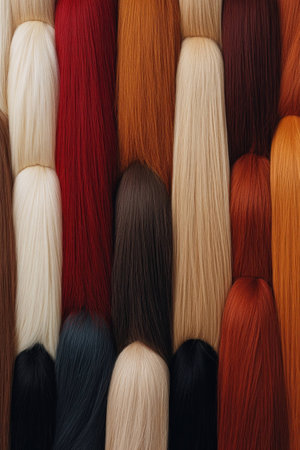 A vibrant array of long, silky hair strands showcasing diverse colors and textures, perfect for hair fashion, beauty concepts, or hair care applications