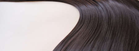 texture of beautiful glossy long hair.Curl female healthy hair. Concept hairdresser spa salon. strand of brunette silky hair.