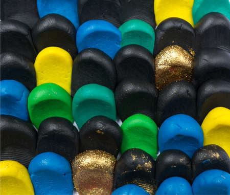 Multi-colored stones for the manufacture of jewelry, top view.