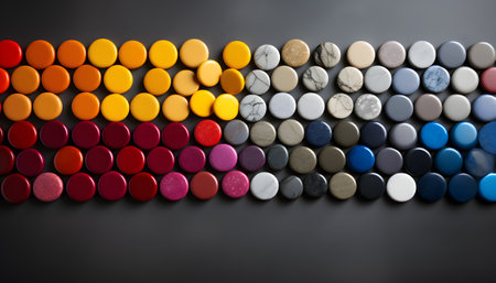 Bright yellow circular buttons arranged in grid pattern create vibrant and playful visual. smooth texture and uniformity evoke sense of fun and creativity, perfect for design projects