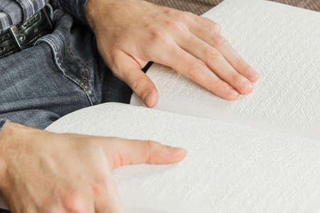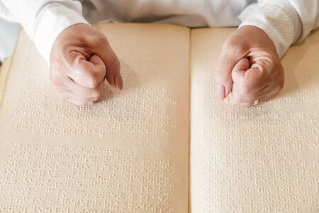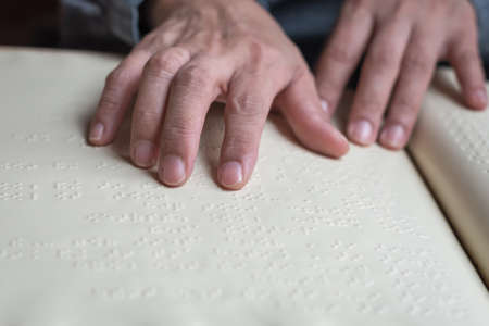 Books Braille. The touch of your fingertips the texture of the paper, reading the sign. Reading the book blind man.