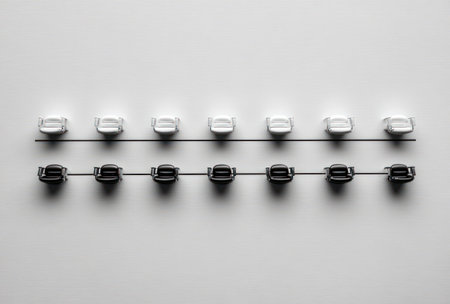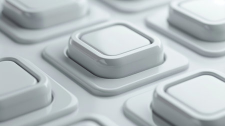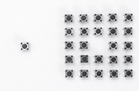 Black electronic buttons on a white background. Electronic elements. Power buttons.