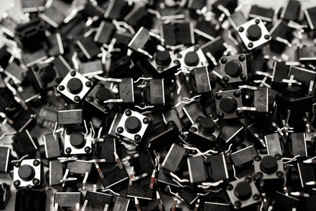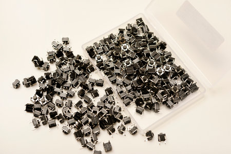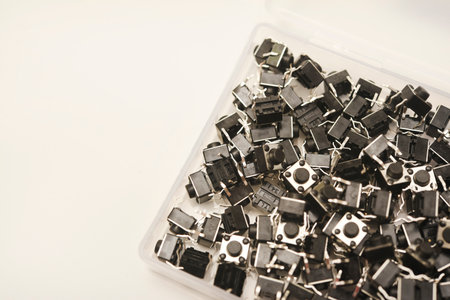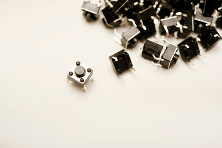 Electronic components pushbutton switches electronic hardware on the white circuit board