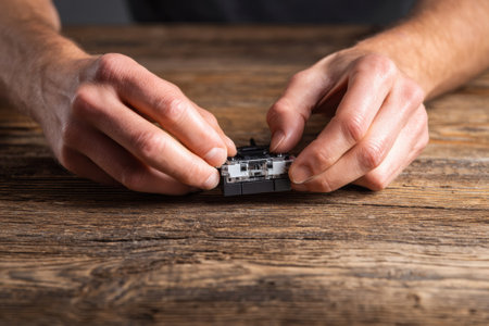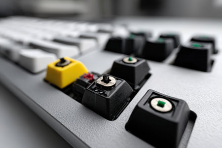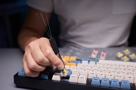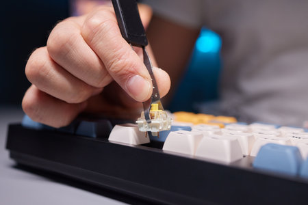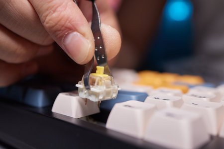 Top view of the replaceable keyboard keycaps. Keyboard repair technician.