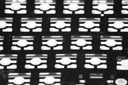 top view of keys and buttons circuit board of disassembled accounting calculator close up