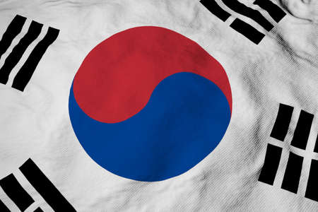 Detailed 3D rendering closeup of the flag of South Korea. Flag has a detailed realistic fabric texture and an accurate design and colors.