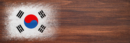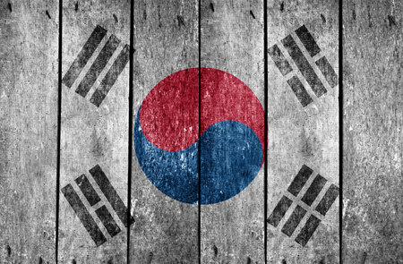 Flag of South Korea. Flag is painted on a wooden surface. wooden background. Plywood surface. copyspace. textured creative background