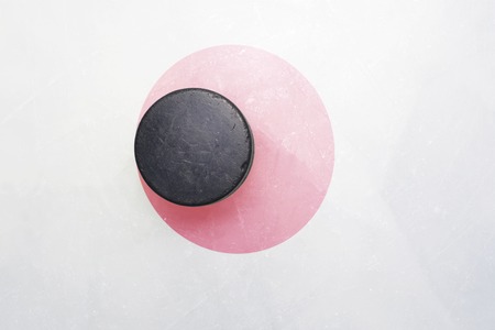 vintage old hockey puck is on the ice with japan flag