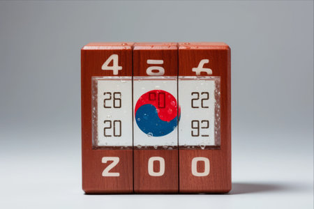 Wooden stamper, seal with South Korean flag, 3D rendering isolated on white background
