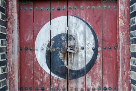 Old door with a ancient lock at the gate of Korea Traditional wooden house of Hwaseong Fortress in Suwon City, South Korea